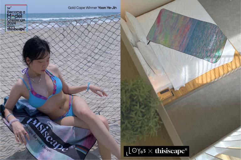 [좌] 2023년 최초로 출시된 디스이스케이프® 모네 에디션과 함께 비컴어모델 챌린지에서 Gold Cape를 차지한 윤예진님